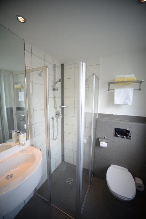 Comfort room (single bed) The 16 square meter comfort rooms are particularly quiet, facing the courtyard, bright and friendly. You sleep in 1 x 2 m single beds and have a desk. Furthermore, there is a coffee and tea station, safe, luggage rack, as well as a flat-screen satellite TV in the rooms. The bathroom has a shower and a toilet.